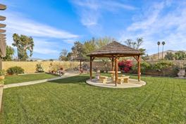 Relax in style under the stunning Alumi-wood two-tone patio that extends across the entire back of the house. Equipped with canned lighting and ceiling fans, it offers an ideal spot to unwind. Enjoy the serene, beautifully landscaped, and private backyard, adorned with vibrant flowers and plants, and complete with a peaceful gazebo.