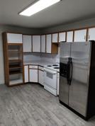 Single story floor plan features a sitting room at the entry and separate large living room. Largest bedroom has an ensuite dedicate bathroom. In unit laundry room and washer and dryer. Kitchen has ample counter and cabinet space, large fridge and stove.