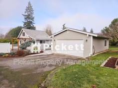 Charming 2 bedroom, 2 bathroom house located in Central Kitsap. Situated in a peaceful neighborhood just minutes from Silverdale. Extending the living space outside is made accessible with a spacious deck and patio area. The house features an electric heat pump for year-round climate control. The kitchen is equipped with a refrigerator, electric stove, dishwasher, and microwave. Washer and dryer included. The vaulted ceilings add a touch of elegance and spaciousness to the interior, while the office space allows for a dedicated workspace or additional storage. Parking is made easy with a large detached 2-car garage that has plenty of space for storage or shop space. This home is on a septic and there is an additional charge of $25 per month in lieu of a sewer bill. A small pet under 25lbs is possible with approved third-party pet screening, an additional $500 security deposit, and monthly pet rent of $35.