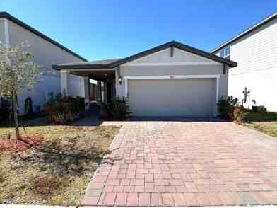 2ND MONTH RENT FREE: Move-In Ready, Pet-Friendly, 2-Car Garage! Available for immediate occupancy! Step into this stunning 2023 Meritage Home in the heart of Winter Haven, Florida—a highly upgraded 3-bedroom, 2-bath single-story home designed to impress. This move-in ready home features neutral tones throughout, a chef-inspired kitchen with stainless steel appliances, quartz countertops, and a large island perfect for entertaining. The master suite boasts a walk-in closet, dual sinks, and a spacious shower, while additional bedrooms are generously sized. Enjoy the convenience of an indoor laundry room with washer and dryer, an energy-efficient design, and a 2-car garage. Pet-friendly and thoughtfully designed for comfort, the home also includes a paver driveway and patio slab. Residents of VillaMar enjoy resort-style amenities, including a sparkling pool overlooking a gorgeous lake, umbrellas, loungers, a playground, and community mailboxes. Don’t wait—schedule your showing today! Sorry No Cats.