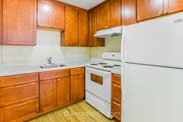 - Kitchen: cabinets for storage and appliances include a refrigerator and electric stove