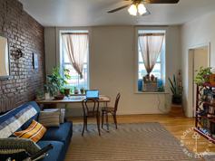 Excellent sunny and spacious walk-up, just 1 flight up to a sweet 1 bedroom apartment with high ceilings right on Smith Street. Great light, large closet, ceiling fan, wood floors, and exposed brick! Large separate kitchen with good cabinet and counter top space.