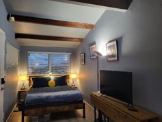Short walk to the state park or the restaurants. One queen bed, full private bath. Kitchenette includes hotplate with pots and pans, dishes, sink, fridge\freezer, electric fry pan, toaster, microwave, and Kureg for coffee. Enough kitchen equipment and cupboard space for a full menu.