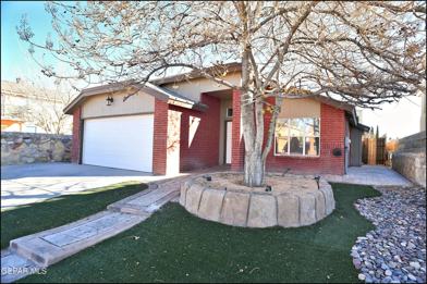 Spacious three-bedroom, two-bathroom residence feels immediately warm and expansive, thanks to an open concept illuminated by ample sunlight. The floor plan encourages easy living, connecting a comfortable living room with a charming fireplace to a dining area and a kitchen ready for home cooking. Durable flooring throughout ensures beauty and ease. The bedrooms are peaceful havens, providing quiet spaces to unwind at day's end. Outdoor enjoyment is ensured with a covered patio perfect for enjoying the El Paso breeze and a handy storage shed for added convenience. This home offers a balanced blend of indoor comfort and outdoor potential. Deposit-Free Renting service to Obligo qualified renters, fees may apply.