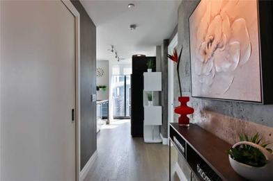 Stunning Split 2 Bdrm 2 Bath At Luxurious Theatre Park! Fully Furnished W/ Tasteful Decor. Spacious & Functional Layout 920 Sf + 151 Sf Balcony W/ Bbq Gas Hookup. Modern Kitchen, Exposed Concrete, Floor-To-Ceiling Windows, Hardwood Floors. Parking Included. One Of The Best Locations Downtown! Walkscore Of 99. Steps To St. Andrew Station, King Streetcar, Theatres, Financial District, Hospitals, Restaurants, Roy Thompson Hall, Eaton Centre, Nightlife & More!