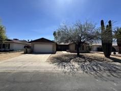 Glendale 4/2 with 2-car garage. Block construction with desert landscaping. Updated with new carpet in bedrooms, new paint, kitchen updates, new blinds. Vaulted ceiling, sunken living room, separate dining and family rooms. Primary suite with large closet. Laundry hookups. Fireplace. Storage shed in back yard.