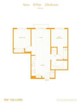 The ideal two-bedroom plan. From the entry, you will walk through an open kitchen, dining, and living area with bedrooms on either side. The open living extends to an oversized window for fresh air to fill your home on warmer days. You will also find a full bathroom with a deep soaker bathtub, laundry, and a kitchen pantry for storage.