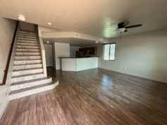 1464 sq. ft. , 2 stories. Downstairs: Living room, dining room, kitchen with stove, dishwasher, refrigerator, 2 car attached garage, 1/2 bath. Upstairs: Master bedroom with bathroom and sliding glass door to upstairs balcony, laundry room with washer/dryer, 2 other bedrooms and hall bathroom. Beautiful tile flooring.