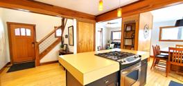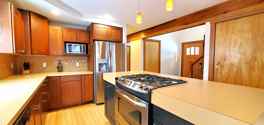 Enjoy a cozy open layout with a stocked kitchen, dining island, Smart TVs, Wi-Fi, and a gas fireplace. Outdoor amenities include a fenced yard, fire pit, deck, garage, and 2 kayaks. The upper-level master suite features a king bed and private bath, while two main-floor bedrooms share a full bath.