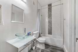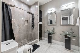 Pamper yourself in the spa-like master bathroom featuring a walk-in closet and a custom closet system, ensuring your wardrobe is as organized as your lifestyle. Elegant modern light fixtures illuminate the home, creating a chic ambiance that complements the original hardwood flooring, beautifully refinished and flowing seamlessly throughout.