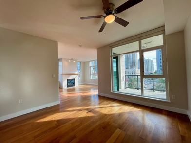 Welcome to this stunning single-story condo located on the 6th floor of the prestigious Grande South condominiums in the highly sought-after area near Little Italy and the Santa Fe Depot. This 2-bedroom, 2-bathroom home offers a modern and luxurious living experience. The kitchen features a gas stove, refrigerator, and double oven, all made with sleek stainless steel appliances. Cozy up by the gas fireplace in the spacious living area, perfect for relaxing or entertaining guests. Convenience is at your fingertips with a stackable washer and dryer in the unit. Step outside onto the balcony and enjoy the breathtaking views of the city. The complex offers a range of amenities including a gated entry for added security, a refreshing pool and spa for those warm California days, a fully-equipped gym for your fitness needs, and a BBQ area for outdoor gatherings. With its prime location in Little Italy, you'll have easy access to a variety of dining, shopping, and entertainment options. Don't miss out on the opportunity to call this luxurious condo your new home. Schedule a showing today and experience the best of San Diego living at Grande South condominiums.