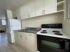 3. This home has a kitchen complete with a refrigerator and stove. Washer hook up is available for each unit, at the back of the building for your convenience.