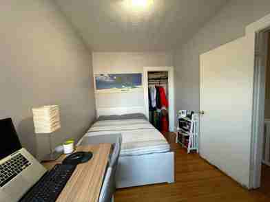Bedroom is approximately 12ft x 8ft. Steps away from Ossington Subway Station (2 min walk), great access to the city and a fantastic neighbourhood overall. A short walk to Christie Pits Park, Korea Town, Dufferin Mall, The Annex, etc. Many amenities nearby, such as restaurants, laundromat, banks, grocery stores, etc. A walker's paradise. The room is located on the second floor. It has an east facing window, so you get the sunrise.