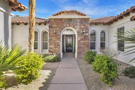 Huge lot at end of cul-de-sac with really awesome views across the driving range, multiple fairways and lakes, the spectacular 18th hole, and the clubhouse. And a gigantic side yard with a putting green! The court entry leads you into a soaring 18', skylit rotunda foyer that opens up to BIG a big 43' Great Room, a big 17' Office/Den, a big 35' Master Suite over 4400 sf. of spacious luxury. Guests?...a courtyard casita plus two guest rooms with their own sitting room (or media room or family room). The Great Room with its bow-window dining room captures the view and is perfect for entertaining. Outside the lush landscaping, custom pool & stream, and the huge side yard extend the entertaining and frame the view. Magnificent fireplaces, gourmet kitchen with European-style maple cabinets, slab granite counters, built-in fridge; switch-start fireplace, Roman tub in master bath.