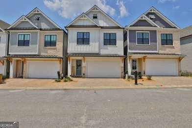 Built in 2022, this single-family home has all of the builder upgrades. A fenced-in backyard with a paved concrete area and a large covered patio area is truly private forever as this lot backs up to a protected land that can never be built on. Large open-concept upgraded kitchen features SS appliances with double ovens, a built-in microwave, upgraded gold hardware, a tile backsplash, and a large island. The owner's suite upstairs includes a custom walk-in closet, large bath with double vanities, a large walk-in tile shower, and a balcony. Large secondary bedrooms also include walk-in closets and a large secondary bath with upgraded double vanities and a tub/shower combo. The convenient large laundry room on the second floor includes a sink. Additionally, this home is equipped with window blinds throughout. The 2-car garage includes an epoxy floor and lots of storage. Conveniently located minutes from downtown Woodstock, and many additional shopping, dining, and entertainment options. Neighborhood amenities include pool and tennis courts.