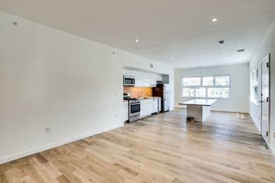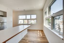 This modern, two-bedroom, one bath apartment is the perfect spot! Nestled in a boutique building that features a gallery space on the first floor and a shared rooftop, this is a truly unique space. Walking into the unit, you'll find an open living area and kitchen. Large windows saturate the space with natural light that is carried through the home, courtesy of the gorgeous hardwood flooring. The kitchen offers stainless steel appliances, including a gas stove. Down the hallway, you'll find a work sink, washer and dryer, and a full bath, which has an exterior sink to make it even more convenient when company is over. Both of the bedrooms are generously sized and feature desk nooks that emphasize the live/work atmosphere of the apartment.