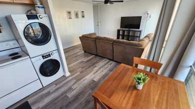 Hale O Kalani Tower 2 Bedroom, 1 Bathroom, 750sqft 8th floor highly desired end unit w/lanai. The unit comes with 1 assigned parking stall on property. New washer & dryer in unit along with laminate flooring. A portable AC unit available for tenant use along with ceiling fans in the living room and bedrooms. There is a pool on property as well as an on-site resident manager. No smoking permitted. Building only allows emotional and service animals, no other pets allowed. Water and sewer included, tenant is responsible for electricity and cable/internet. Unit is partially furnished, all current furniture will not be the landlord's responsibility if they need to be repaired or replaced. The building is minutes away from all major Hospitals and universities, close to Ala Moana Shopping Mall, Kaka'ako, Ward. Public transportation/Biki bike rental one block away. Street parking available, additional parking stalls available to rent. Online applications available, $25 non-refundable application fee for all adult applicants. Please contact David Nagatori for showing requests at ****
