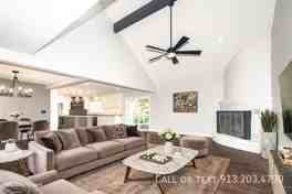 Stylish complete remodel with new wall finishes, tile, flooring, cabinets, countertops, appliances, bath fixtures and more. Large open great room and dining area. Gorgeous kitchen with island, huge pantry, and gas range. Primary bedroom and second bedroom, both with ensuite baths, are on the main level, in addition to the office/study and 1/2 bath. Two additional spacious bedrooms and a full bath are located upstairs. Huge unfinished basement. Partially covered composite-floor deck overlooks beautifully landscaped yard. Located on an oversize corner lot with circle drive. Blue Valley North school district. Very convenient to Town Center shopping, dining, and entertainment area.