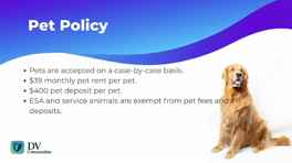Pet Policies: Small Dogs Allowed, Cats Allowed