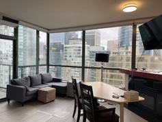 Move in ready. Fully furnished, Bright and beautiful, 1-bedroom+den, Balcony, and 1 bath. This apartment has tons of windows and a breathtaking city. it features a remarkable kitchen Open floor plan with 9' ceilings. Hotel like facilities include pool, hot tub, party room, business centre, gym and concierge. Gas Fireplace keeps you cozy! 2 guest suites. This place is close to 610 sqft