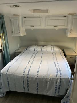 "Introducing our cozy 1-bedroom RV, perfect for those seeking comfort and convenience. This well-designed space features a bedroom, a bathroom, and a fully equipped kitchen complete with a gas stove, oven, and fridge and tons of storage.