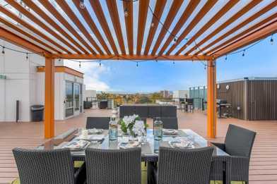 Indoor Pet Play, Area Outdoor Pet Area, Courtyard with Patio Seating Fire Pit and BBQ Rooftop Terrace with Mountain Views, Internet Café, Yoga Studio, Wine-Tasting Room , Theater Room, Cozy Resident Lounge with Fireplace, State-Of-The-Art Fitness Center, Common-area Internet, Concierge Services, Basement Storage for Bikes, Recycling Services Off-street, Controlled Access Parking, Garage Parking, Electric Vehicle Parking ,Cable Available, On-call Maintenance, and more!