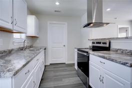This 4 BR 2 BA home was recently remodeled. New kitchen including cabinets & stainless appliances. Both bathrooms with new updated tile & vanities. Split master bedroom with two separate closets. This home offers a separate utility area leading to a covered backyard patio. Oversized detached 2 car garage on large corner lot. New wood look ceramic tile flooring and carpet in bedrooms. The kitchen has an open breakfast bar to living room. Beautiful updated colors & much more.
