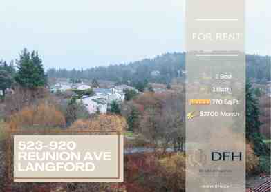 920 Reunion Avenue #523 is a 2 bedroom, 1 bathroom apartment for rent. It is located in Langford. It has apartment amenities including fitness center, assigned parking, air conditioning, outdoor space, dishwasher, hardwood floor, in-unit laundry, and balcony. Cats and dogs are allowed, making it a pet-friendly apartment.