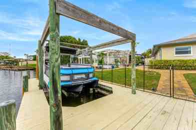 Beautifully renovated, and optionally fully furnished home for rent located in the highly desirable area of Diana Shores in Merritt Island. Watch the dolphins swim by as you sip your morning coffee from the enclosed lanai with 70” wall mounted TV, or catch a nearby NASA rocket launch from the fishing dock. Outside – This quarter acre property includes a sprawling 160 feet of canal facing waterfront, featuring a pool, Tiki Bar/outdoor kitchen with fridge, freezer, 60” smart tv and dual beer kegerator, massive storage shed, multi-use docks with boat lift, plus tropical fruit trees and a raised bed garden with pergola and wooden swing for relaxation.