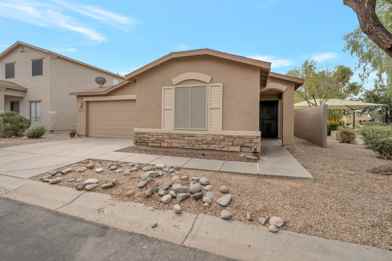 Spacious great room floor plan. Brand new vinyl wood flooring in the family room and bedrooms. New bathroom sinks and fixtures. Eat in Kitchen features a pantry, black appliances and lots of cabinet space. Windows all have exterior sun shades to cut down the sun and the heat. Easy to maintain landscape! Owner will be installing Artificial turf in the backyard area, just around the patio area once the property is leased! Home is located just steps away from the community pool!