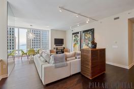 Within the Grand Residences home, enjoy city and bridge views from the rooms. You'll find top-of-the-line appliances; including 36" Subzero refrigerator, 30" Wolf stainless steel stove and wall oven, Wolf stainless steel microwave, Miele Optima dishwasher, U-Line Wine cooler in Kitchen and Whirlpool washer/dryer in laundry room. Kitchen comes with Calacatta Luccicoso Marble counter top with German made base cabinets by Studio Becker and Wall cabinets are Satin Glass with Aluminium Frame. Spacious master bathroom has German made Walnut cabinet by Studio Becker with Calacatta Oro Marble counter top. The second bath has German made Dark Cherry Cabinet by Studio Becker with Bella Crema Limestone floor. For your guests, there is a powder room in the foyer. The unit comes with the 7/8" thick Umbra Beech wood floor and carpet in the bedrooms.
