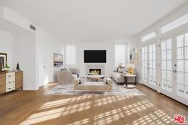 Situated in a highly convenient Brentwood locale just moments from San Vicente and Montana, this 2-bedroom condo pairs high-end, modern finishes with a light and bright living space. Through the foyer, light-colored hardwood engineered flooring leads you to an expansive open-plan living and dining room flanked by a wall of french doors leading to the private balcony. The tastefully remodeled kitchen is open to the dining area and features stainless steel Samsung appliances, quartz countertops, an apron sink, pantry, and glass fronted upper cabinets. The home offers two generously sized bedrooms and two completely remodeled bathrooms, inclusive of the luxe primary suite with a cozy fireplace, walk-in closet and marble-clad spa bath with a soaking tub, glass-enclosed shower and double vanity. Other notable features include in-unit stacked washer and dryer, updated HVAC system and a controlled access community garage with a private storage locker and tandem parking space with room for two vehicles assigned to the unit, as well as guest parking. Surrounded by some of LA's best dining, shopping and amenities including the Brentwood Farmers Market, Brentwood Country Mart and more, the condo offers unrivaled convenience and is an idyllic representation of modern city living at its finest.