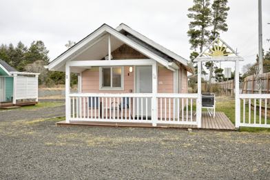 The cottage has a small patio for a bit of outdoor relaxation. The resort offers a shared playground and a few recreational activities like horseshoes and fire pits for an evening bonfire. Walk just five minutes to the beach, where you can enjoy beachcombing, casual strolls, or just taking in the sea breeze.