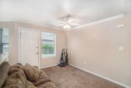 Beautiful two story townhome, crown molding, granite countertops, stained cabinets and carpeting in living area. Master bedroom is downstairs, larger living room and two additional bedrooms upstairs. Includes Large fenced back yard. Community features an Elementary school, community pool and much more!