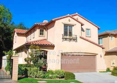 This home offers 3 bedrooms, 2.5 bathrooms, and an upstairs loft. It backs up to a tranquil creek and has no immediate neighbor on one side, providing added privacy. The kitchen features granite countertops, a stylish backsplash, white cabinetry, and a convenient breakfast bar. The primary bedroom offers direct access to an ensuite bathroom featuring a dual vanity, soaking tub, stand-up shower, and elegant dark wood wood cabinetry. Low-maintenance backyard featuring artificial turf and an 18" fire pit (No Warranty). Other notable features include an upstairs laundry room, central A/C, an attached 2-car garage, and ceiling fans in the bedrooms. Conveniently located near shopping and dining, this home is just a short drive to Amgen and Los Robles Hospital, and within walking distance to a market and Starbucks.