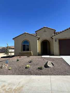 Beautiful brand-new home in the highly desirable 55+ Community of Sun City Festival. Split floor plan, 2-bedroom 2 bath plus a den/office or can be used as an extra bedroom. This home has so many features and upgrades. Kitchen has custom made cabinet with pull-out drawers, lots of counter space for cooking, spacious pantry, large kitchen island and all appliances (refrigerator will be installed if needed). Primary suite bath has 2 separate sinks and extra-large walk-in closet. Large living/dining area with surround sound hookup available. Enjoy one of 2 patios, access from kitchen which sits in the middle of the home or the covered back patio in the back yard. Lots of windows throughout for natural sun light. Beautiful landscaping front and back yards. In close proximity to White Tanks Mountain for hiking. Enjoy all the amenities of the Community, tennis, resort style pool, walking trails, pickle ball, dog park and so much!!