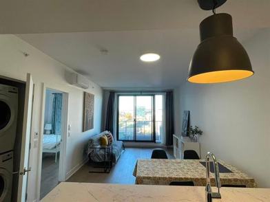 New, fully furnished 3½ downtown condo offering approximately 600 sq. ft. of modern living space, complete with Wi-Fi, electricity, kitchenware, and bed linens included. This unit features contemporary finishes, 8 appliances including air conditioning and a microwave, and access to excellent building amenities such as a fully equipped gym, lounge, BBQ area, and outdoor swimming pool. Ideally located just 5 minutes from Beaudry metro, 8 minutes from Berri-UQAM, and steps from CHUM Hospital, UQAM, Chinatown, Old Montréal, restaurants, the Berri bus terminal, and Montréal's largest central library.