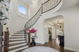 Stunning Shaddock home in Prosper ISD. Located in the highly desired Grange section of Light Farms. Features include oak wood floors, wooden beams, complete surround sound system, electric blinds & plantation shutters, & Restoration Hardware lighting throughout. An open concept kitchen & family room, primary and 2nd suite bedroom downstairs, large office space, & upstairs game room loft. Fully equipped media room with projector, screen, beverage fridge, & built in microwave. Kitchen features upgraded Kitchen Aid appliances, seamless quartz countertops & backsplash, double ovens, & pot filler. Matching Kitchen Aid refrigerator, wine fridge, beverage fridge, & Samsung washer & dryer included with the lease. Breathtaking primary suite has Carrera marble tile and countertops throughout, separate vanities, large walk-in closet with built in shelves, and a large soaking tub. Entertainers outdoor living space, complete with a built-in grill, gas fireplace, TV prewiring, and a 3 car garage.