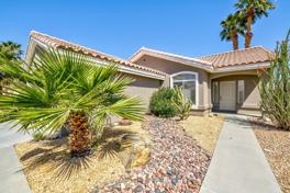 55+ Sun City Palm Desert Turnkey Furnished Hummel model 2/2. 4 Month Minimum. LEASED Dec 2025-April 2026. Golf cart, HOA's, cable & wifi, gardener and utilities included with $100 cap on electric. $50 cap on gas per mo. Living area with large flat screen TV. Primary suite with King bed & large flat screen TV, desk & printer, bath has upgraded dual quartz vanity, step-in shower and walk-in closet. Guest bedroom has a queen bed and TV, guest bath has tiled shower & tub. Tile floors and plantation shutters through-out. Open kitchen with stainless appliances and gas stove. Covered patio is furnished with a BBQ. Freshly painted and landscaped.