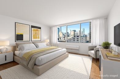Available January 15th. Unfurnished. The apartment features a king-sized bedroom, open kitchen with brand new appliances and updated countertops, and open city views. The Lausanne is a full-service luxury condominium, conveniently located in Midtown East. Amenities include a live-in super, 24-hour doorman, landscaped roof deck, gym, bike storage (free), and storage units available for rent (waitlist). There is a central laundry room on the second floor. Recently updated hallways and common areas. The parking garage is located on the first floor of the building for a separate fee. Close to a multitude of subway lines, Grand Central, shops, and restaurants. Showings are BY APPOINTMENT ONLY. BHS Exclusive Listing.
