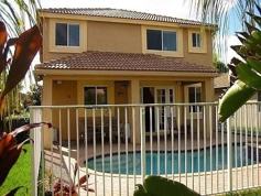 Fantastic 2-story, 4 bedroom, and 3.5 bathroom house with a pool and large patio. Large upstairs master bedroom with attached bathroom, and a second large upstairs bedroom with attached bathroom (like a second master bedroom). Powder room (half bathroom) downstairs, and 3 full bathrooms upstairs. French doors to Pool and a large patio in the backyard. Top "A" or "A+" rated schools: Manatee Bay Elementary school, Falcon Cove Middle school, and Cypress Bay High school. Gated community with 2 entrances and 24x7 security personnel. Club house with amenities such as a lap pool, a resort-style large pool, a wading pool, and a water slide, 3 or 4 areas for parties and entertaining. Soccer field, Basketball court, roller hockey rink, and a 2.2 mile beautiful walking/jogging path in the community.