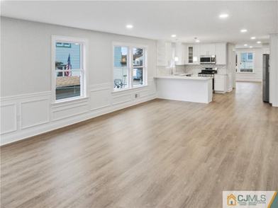 HUGE first floor unit. Beautifully finished with modern upgrades. This unit features a large open floor plan of living room, dining room, and kitchen. Plus an additional living space. Three bedrooms. Master bedroom with double closets. One large bathroom consisting of a double sink vanity, tub, plus a stand up shower, and linen closet. Washer and dryer in the unit. Central AC,.private use of the backyard, which features of paver patio, and driveway for parking. Excellent credit, no pets