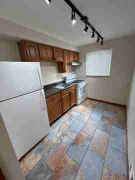 This is a 1st floor apartment with hardwood floors, big windows, ceiling fans, and a tile bathroom. The kitchen has tile floor, oak cabinets, room for a table, full size refrigerator, and electric stove. Landlord pays water, sewage, trash, and gas for hot water and heat! Tenant pays electric. A window AC unit will be installed upon request.