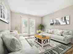 The open-concept apartment includes a living room, dining area, and kitchen with all major appliances including dishwasher and microwave. In addition to fully equipped kitchens, you will enjoy the upgrades in the home such as wood-like vinyl flooring, faux granite countertops and updated cabinetry.