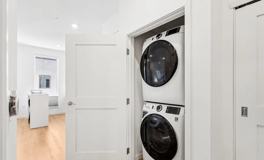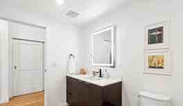 ultra-efficient 1BD/1BA home is thoughtfully designed to maximize space and functionality. The sleek, modern kitchen features high ceilings that enhance the open feel and allow for abundant natural light. A well-appointed bathroom offers ample storage, adding to the home's smart design. Residents enjoy a comprehensive amenity package, including a pet washing station, bicycle storage, fitness center, community lounge, and a central courtyard with plenty of seating. The Master Plan also boasts parks, public art installations, pocket parks, walking paths, and more