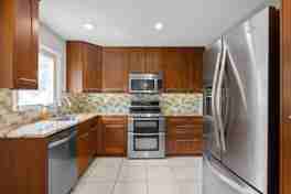 Step inside to an open and inviting layout featuring updated flooring, fresh neutral tones, and abundant natural light throughout. The fully renovated kitchen is a standout, showcasing rich wood cabinetry, sleek countertops, stylish backsplash, and stainless steel appliances—perfect for both everyday living and entertaining.