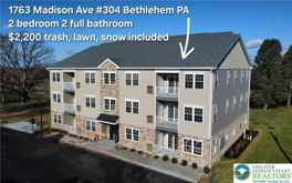 Private, modern, and quiet third floor 2 bedroom 2 full bathroom apartment located close to Heimple Park and within walking distance of downtown Bethlehem. The kitchen is modified with upgraded cabinets with quartz counter tops, stainless steel appliances, full size refrigerator with ice/water dispenser. Full size washer and dryer in each apartment! The primary shower has full shower door and secondary bathroom is modified with a shower/tub. Luxury vinyl flooring throughout and horizontal blind window treatments throughout. The building is equipped with a full security system, including exterior and interior common area video surveillance. Key fob for front door entry with call/monitor system to guest entry. High efficiency heat pump that provided central heating/cooling. New bike storage shed to be available!