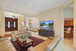 Set on nearly an acre, this 4 bedroom, 3 bathroom residence with a pool offers space, privacy, and refined finishes. A triple split layout allows comfortable separation for family and guests. Polished marble floors highlight the main living areas, with warm wood flooring in the bedrooms. The custom kitchen features stainless steel appliances and an eat in counter that connects easily to the family room. The primary suite includes a large bath with a freestanding tub and two walk in closets. Outside, enjoy a covered patio, summer kitchen, and an impressive pool surrounded by mature landscaping. Impact doors and shutters provide storm protection. A well balanced home designed for everyday living and entertaining.