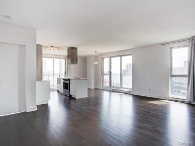 Griffintown Element project. Big corner unit with 2 bedrooms and one bathroom. Two balconies with magnifiques view. Access to 2 terraces including one on the roof. Access to an Indoor pool and Gym.1 indoor parking is available for an additional $250/month.