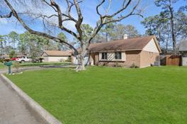Discover this inviting single-story residence nestled in the Audubon Park neighborhood of Humble. This home features three spacious bedrooms—each carpeted for comfort—and two full bathrooms tiled with clean, modern surfaces. A standout of this home is its open-concept living and dining area, complete with tile flooring and a brick-encased fireplace, perfect for cozy gatherings and seamless entertaining. Adjacent, a well-appointed kitchen and breakfast nook boast ample natural light, practical cabinetry, and tile accents throughout. Outdoors awaits a covered concrete patio and a generously sized backyard, ideal for barbecues or tranquil relaxation. Parking is a breeze with the attached two-car garage, providing both convenience and storage. The home's brick and wood exterior ensures classic curb appeal and low-maintenance longevity. Just minutes from Beltway 8 and I-69, making commuting or navigating Greater Houston a cinch.